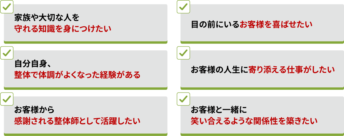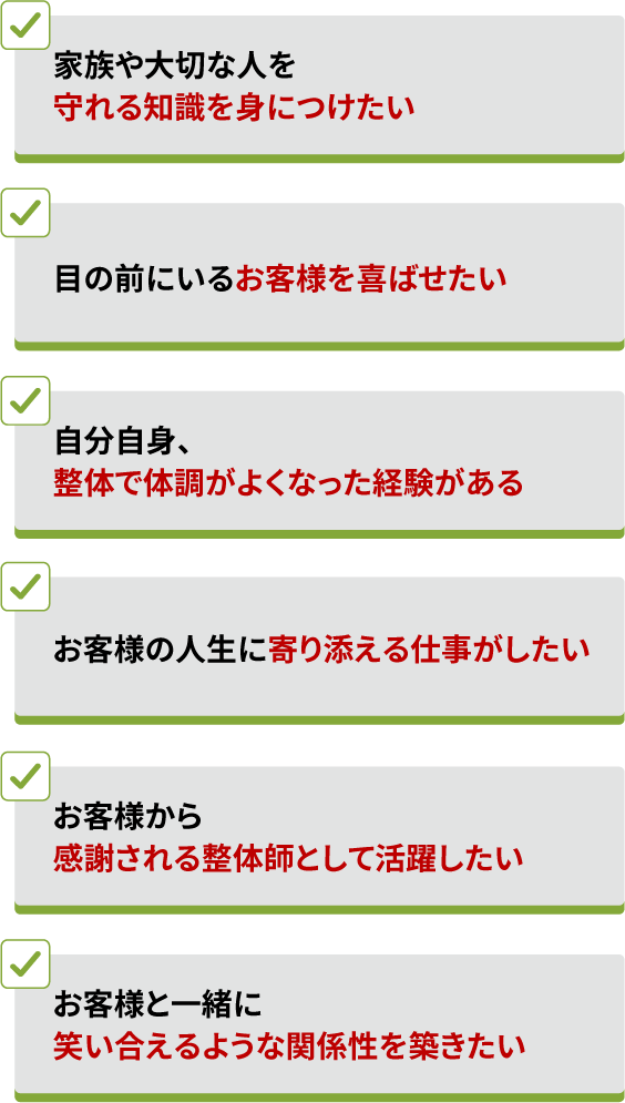という方であれば、経験、未経験を問わず整体師として活躍することができます。