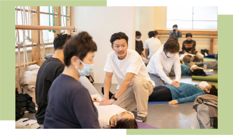 県外への出張整体、ボディワークショップ、ヨガ指導、介護施設や整骨院スタッフへのスキルアップ講師など様々な分野で活躍。