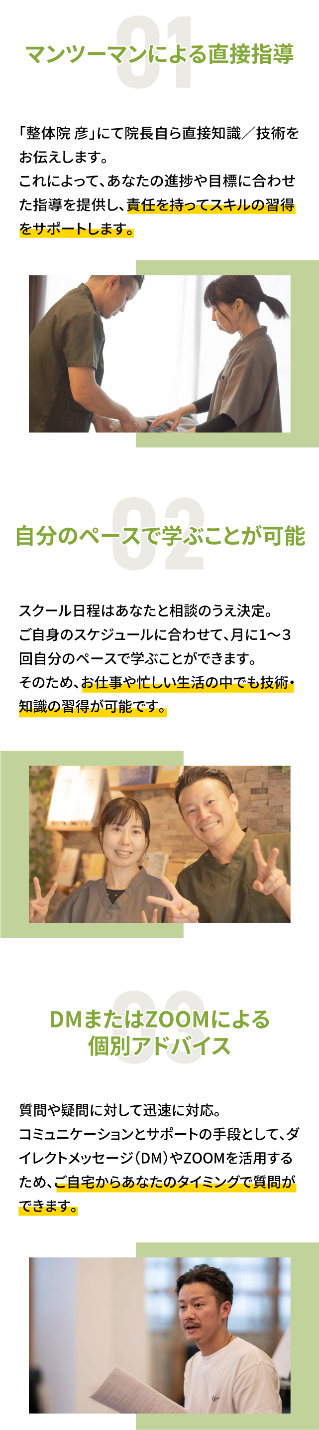 整体師として活躍するためのスキルは、私がマンツーマンで丁寧にお教えします。